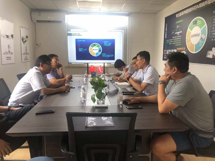 领导池荣虎、陈为、曹梦龙一行赴校友企业青岛科创信达科技有限公司走访考察。