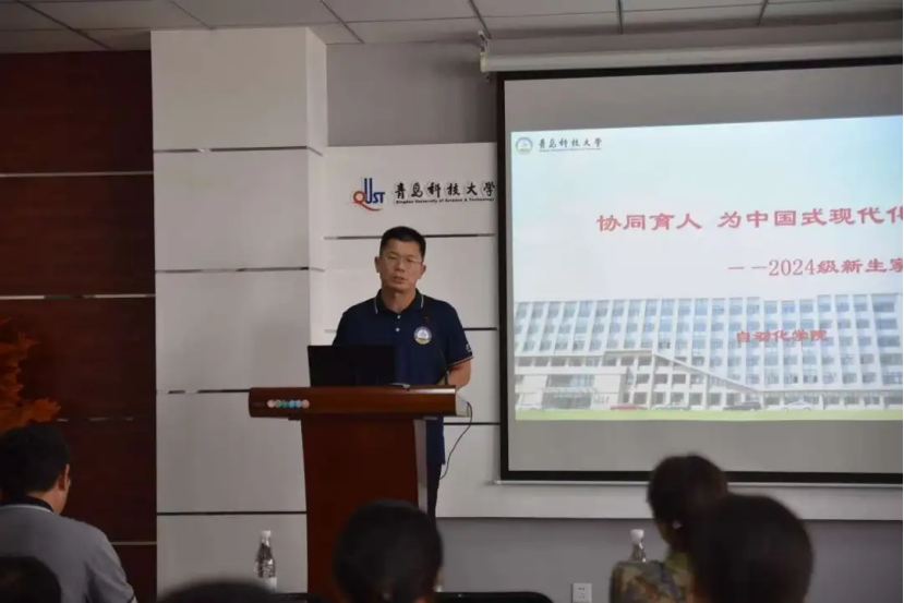 张伟为新生家长介绍了自动化等六个专业人才培养的内涵、课程和特色等内容。刘璐围绕“助力大学生性格养成”这一话题,为新生家长提供了方法论的指导,以助力孩子成为具有健康人格、积极心态和良好社交能力的优秀人才。张郁浩结合学生教育管理工作,为新生家长解读了学籍管理办法、学生党团员发展、学生资助、奖学金评选等相关政策文件。
