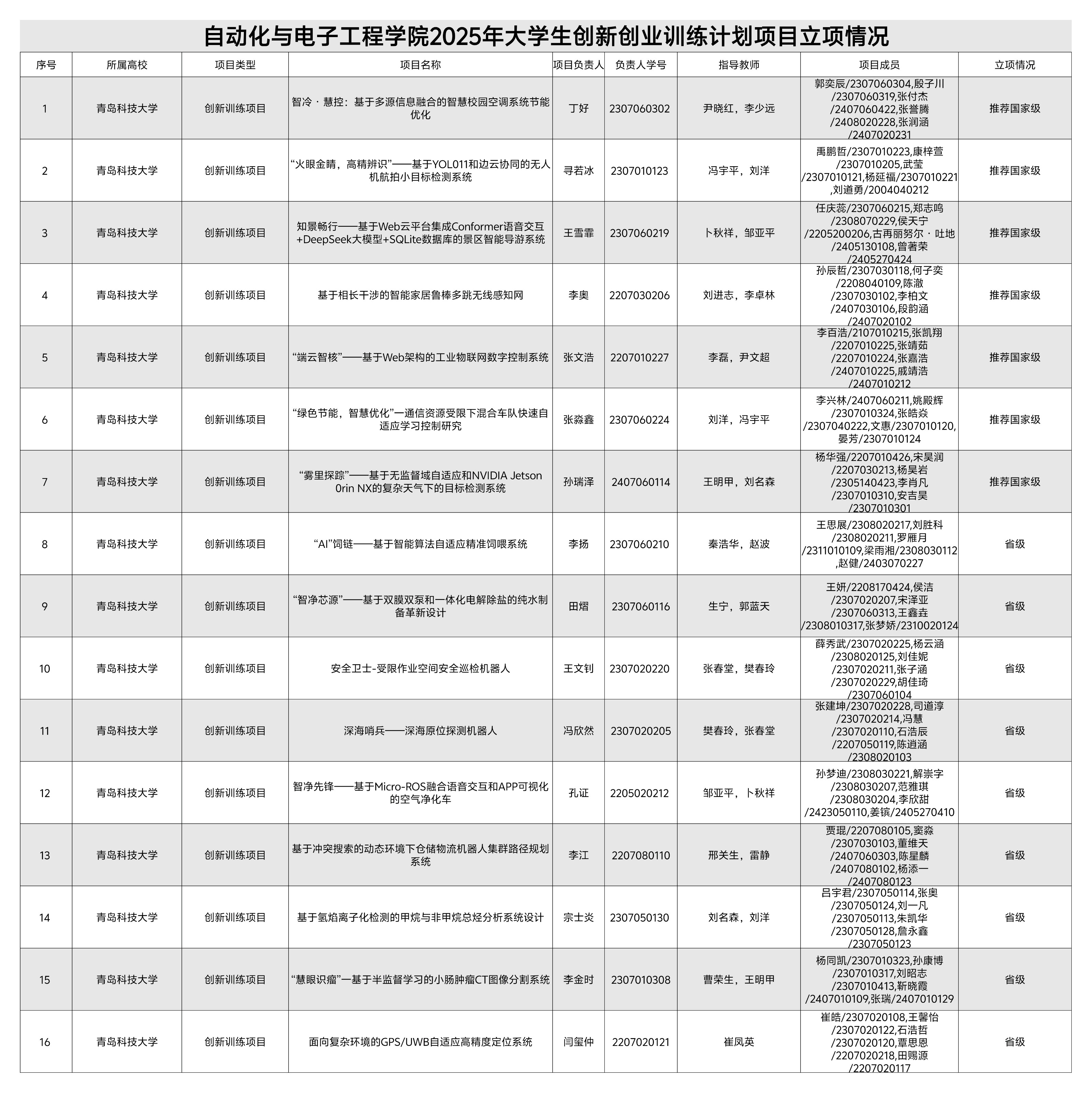 近年来持续深化教学改革、注重产学研融合、着力构建创新型人才培养体系的成果体现。这些项目的研究内容多聚焦于人工智能、智能制造、先进控制、电子信息等前沿领域,与国家和山东省的重大战略需求紧密对接,具有鲜明的学科特色和良好的应用前景。直播app