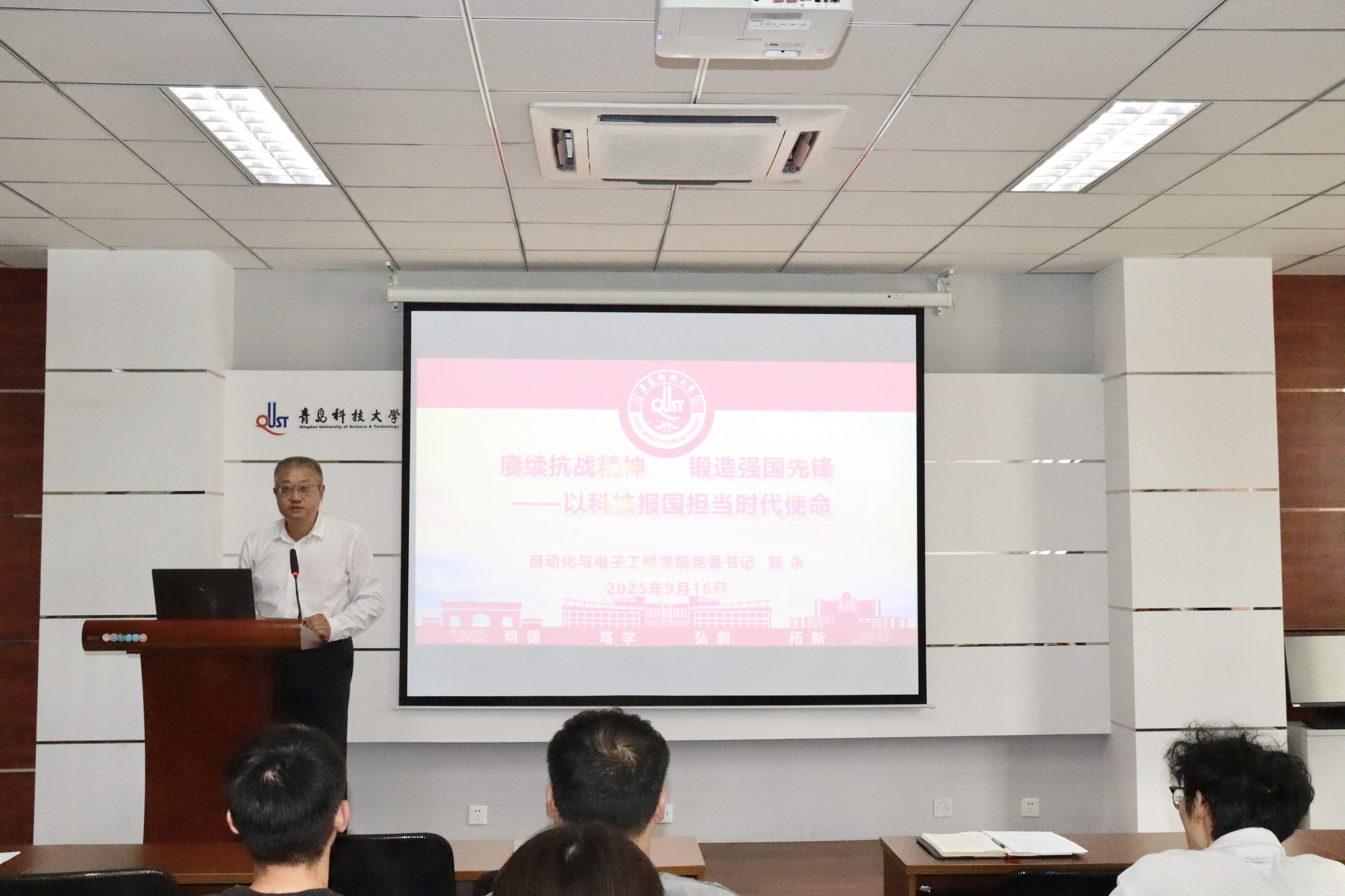 在集中观看习近平总书记在纪念中国人民抗日战争暨世界反法西斯战争胜利80周年大会上的重要讲话视频之后,郭永做题为《赓续抗战精神,锻造强国先锋——以科技报国担当时代使命》讲话,他围绕三个关键词“铭记、传承、担当”对全体学生党员提出三点期望:一是铭记历史,守护和平与真理,坚决捍卫抗战胜利成果,认识到中国在世界反法西斯战争中所做出的巨大历史贡献,警惕历史虚无主义;二是传承抗战精神,将抗战精神转化为科研动力,以“明知山有虎偏向虎山行”的勇气,攻克核心技术卡脖子难题,积极参与“挑战杯”、“互联网+”等创新创业赛事,将论文写在祖国大地上;三是勇于担当使命,做“顶天立地”的科研者,做“知行合一”的实干家,从身边小事做起,在研究生室安全卫生、宿舍建设中发挥先锋模范作用,严格落实直播app