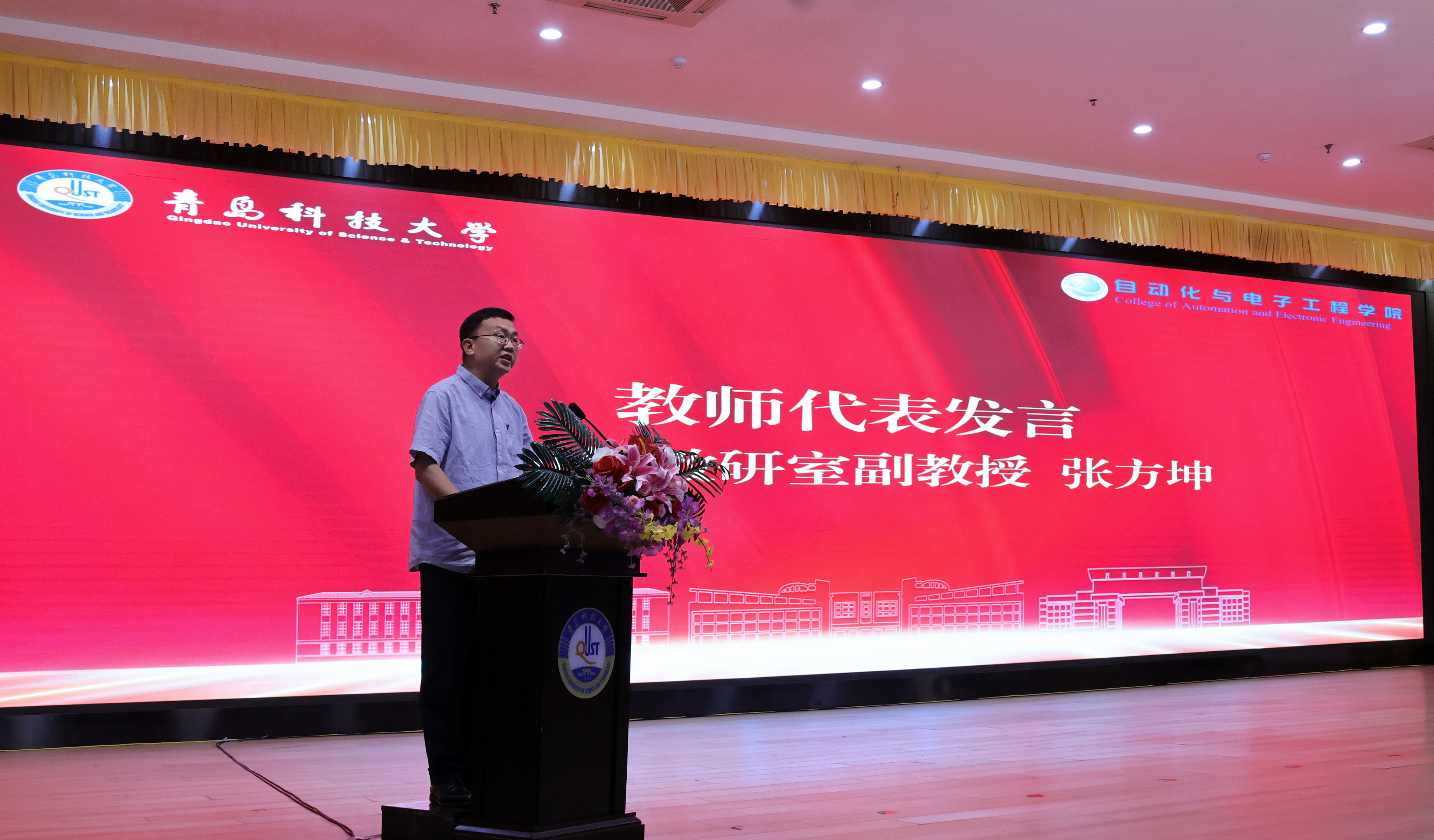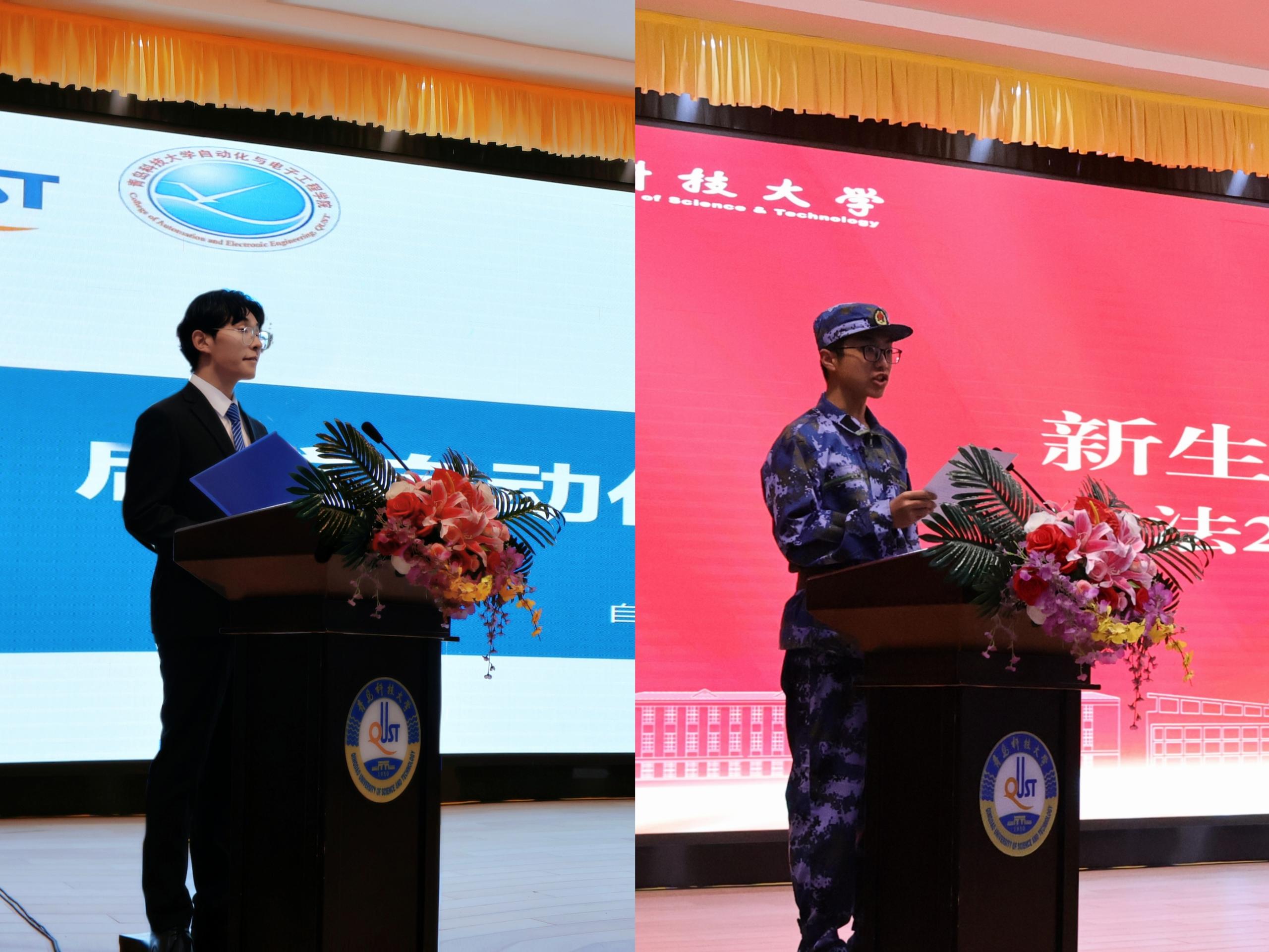 刘名森从行为文明与学风建设角度出发,要求全体新生不忘初心,砥砺前行;学好专业,成长成才;自尊自立,知行合一,展现“自动化人”良好素质与形象。张伟为新生们讲解了大学阶段各专业情况、课程设置及学习特点,鼓励新生们尽快适应大学学习节奏,参与学科竞赛,提升专业素质。张方坤寄语新生重新定义学习,完成从被动接受到主动探索的转变;拥抱“自动化”的星辰大海,找到热爱所在;学会“控制”与“优化”人生系统;融入集体,在合作中创造更大价值。电气233赵元坤代表在校生发言,分享了自己学习、工作和生活经验感想。中法253佟佳骏代表新生发言,承诺将在未来学习生活中以自动化人精神铸魂。
