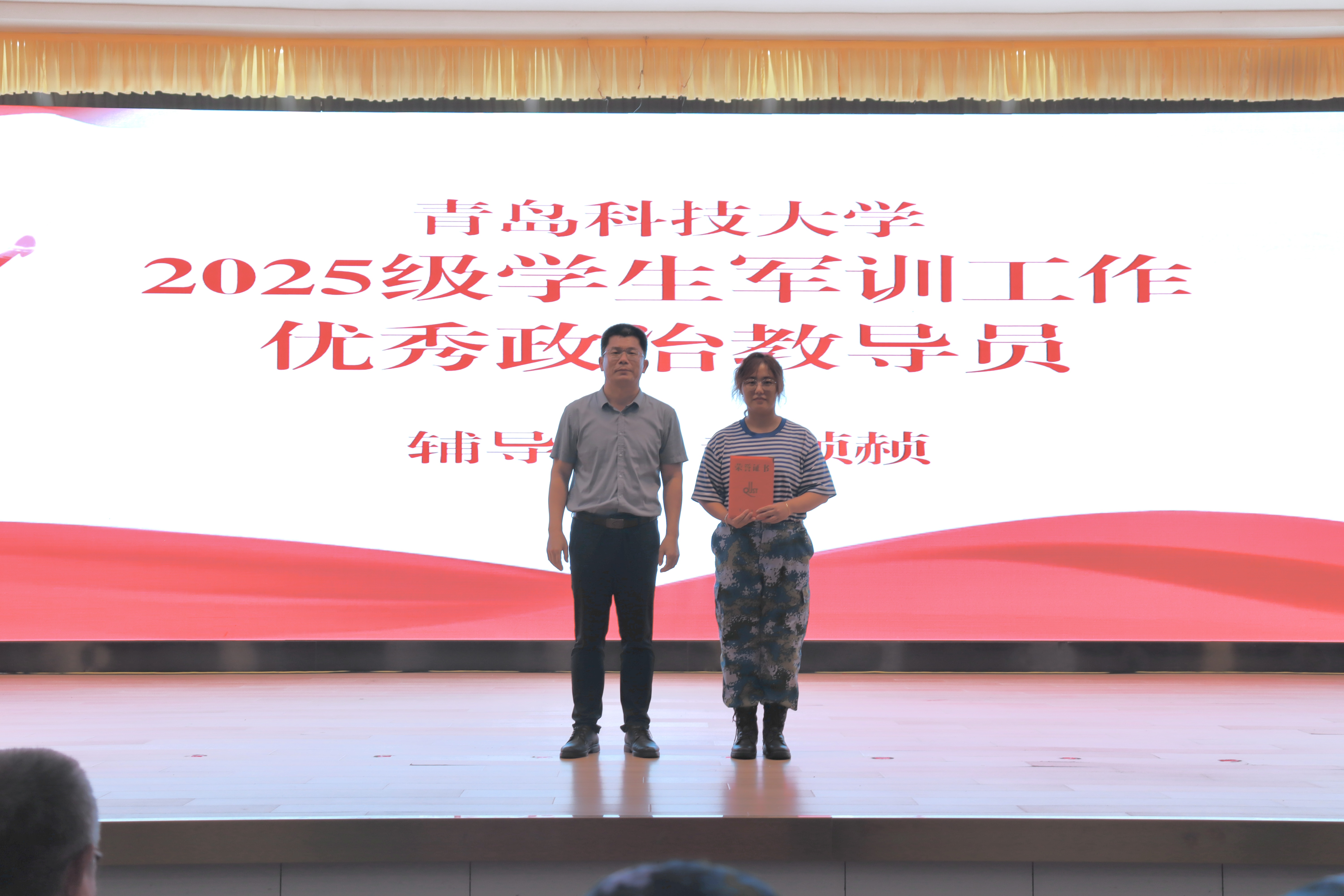 大会伊始,郭永为荣获青岛科技大学“2025级学生军训先进连”“2025级学生内务先进连”的集体进行颁奖,肯定新生们在军训中的卓越表现和顽强意志。刘名森为青岛科技大学“2025级学生军训工作优秀政治教导员”获奖者赵赪赪颁奖,表彰其在军训工作中的突出贡献;张伟与生宁共同为直播app