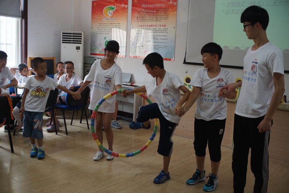 来自青岛市市南区的二十余名务工子女报名参加了本次夏令营活动。签到、分发衣物等基本流程结束后,在服务中心社工的主持下,简单的开营仪式拉开了本次夏令营的序幕。市南区青少年服务中心的郭主任在开营致辞中提到,当今社会对务工子女的关爱程度越来越高,仅仅依靠社工的力量是不够的,本次夏令营的目的就在于与大学生志愿者展开通力合作,急需在学习上、生活中和心理上受到关怀的务工子女提供最为贴心的帮助,希望大学生志愿者能够给孩子们带来正能量的东西。