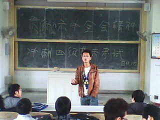 105班召开以“贯彻六中全会精神 冲刺四级期末考试”为主题的班会。