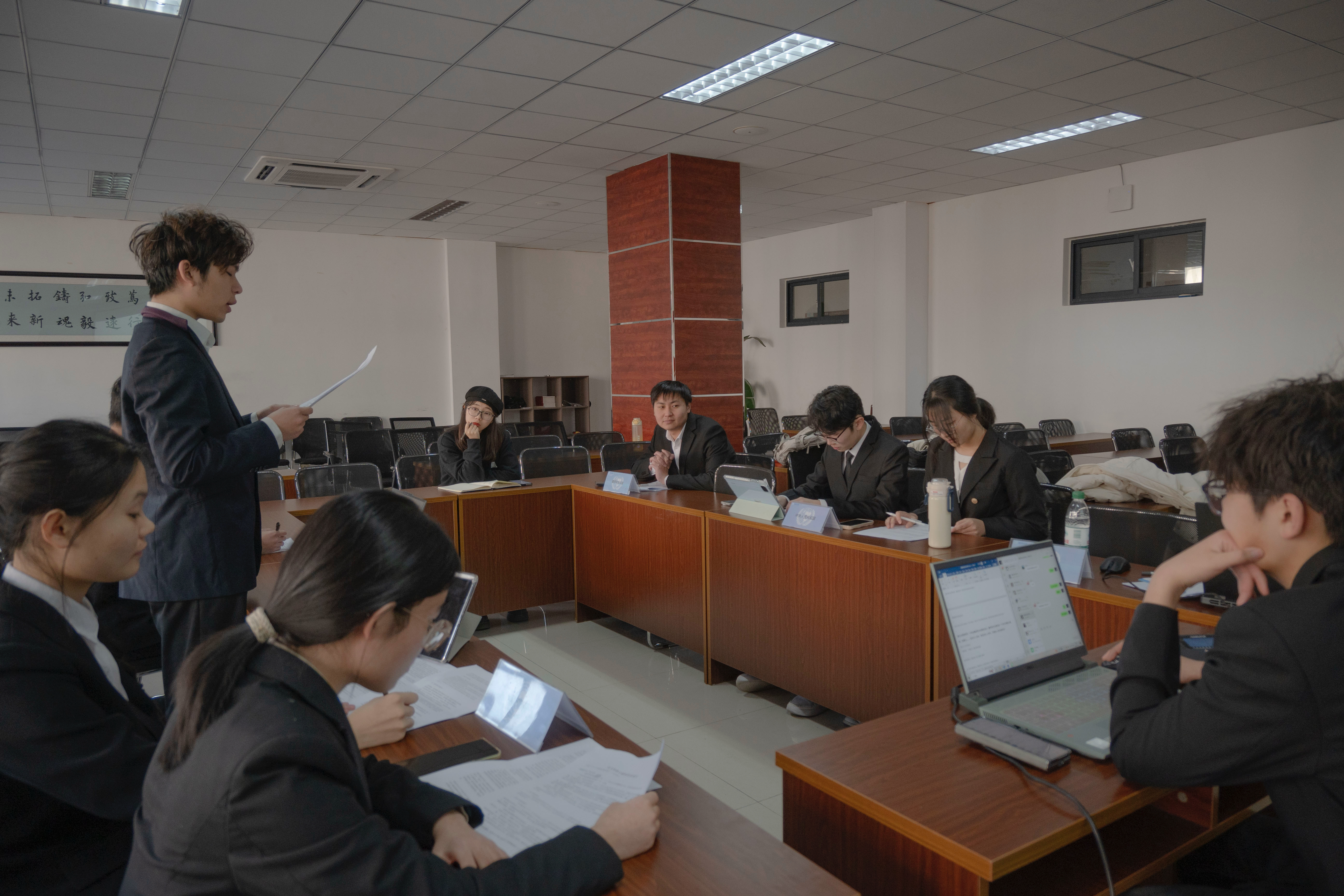 楼410会议室顺利举办。活动由24级辅导员丁雅琼指导,学生代表围绕“致命性自主武器系统(LAWS)的应用边界界定与全球治理路径”这一前沿议题,以专业视角开展深度磋商,在思辨交锋中锤炼素养、涵养学风。