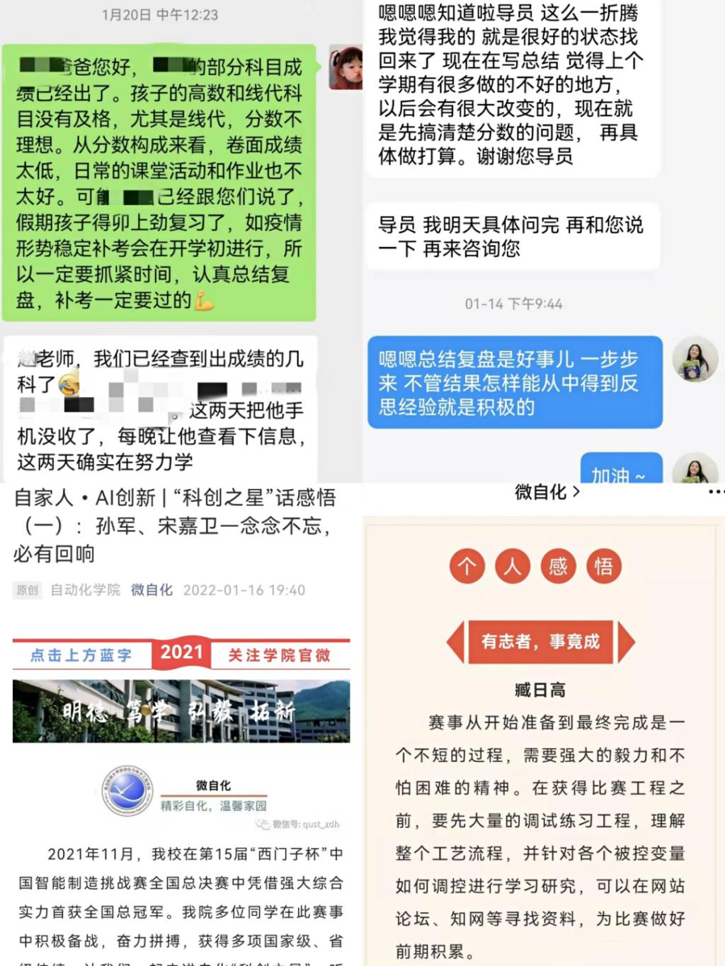 多方协同,强化意识,全面做好寒假规划。寒假离校前,结合疫情防控形势和学校相关通知要求,各年级辅导员、班主任通过年级大会、主题班会等形式,面向全体学生安排部署各项工作要求,引导学生抓好寒假这个“黄金弯道超车期”,做好上学期总结反思及寒假计划。同时凝聚家校共育合力,通过“微自化”公众号和各年级家长群在线发送《致自动化直播app