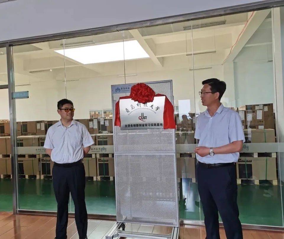 和企业签署校企合作协议,徐华与袁春雷共同为实践基地揭牌。