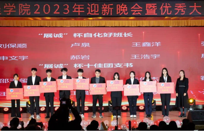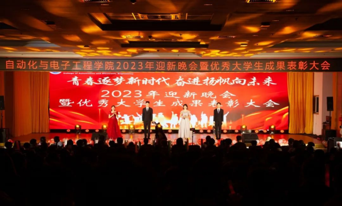 于崂山校区第二报告厅隆重举办2023年“青春逐梦新时代,奋进扬帆向未来”迎新晚会暨优秀大学生成果表彰大会。本次出席大会的嘉宾有校团委副书记王邑,青岛展诚科技有限公司联合创始人、工程部经理、自动化直播app