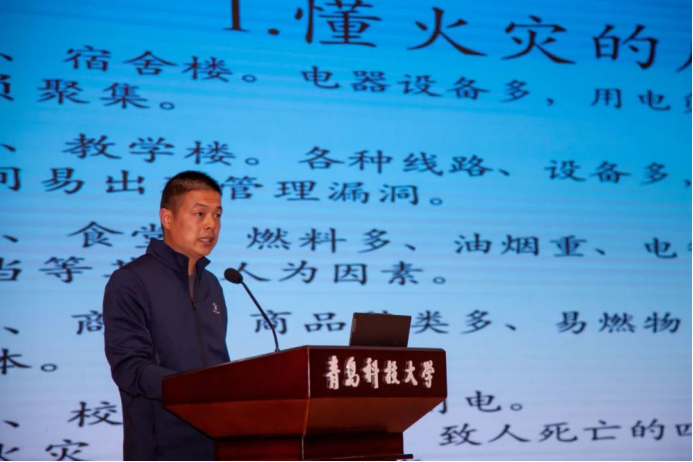 会上,余全波以校园消防安全为主题开展详细讲解和指导,通过对近年来国内高校发生的火灾案例讲解,总结梳理事关校园消防安全的重点事项,呼吁老师和同学们高度关注消防安全,增强安全防范意识,做到心中警钟长鸣。