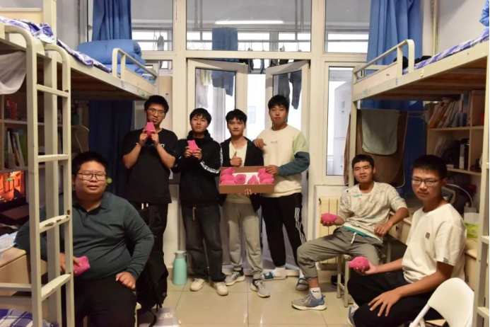 大一新生学子。寓意“苹”安的果实将会温暖每一个同学的心灵,鼓舞“自”家学子们在今后的学习道路上坚定信念、勇往直前,不负学校和社会的期望,做科大家风、自化家风的传承者、践行者,将爱的接力棒传递下去,让爱与感恩的火焰永不熄灭。