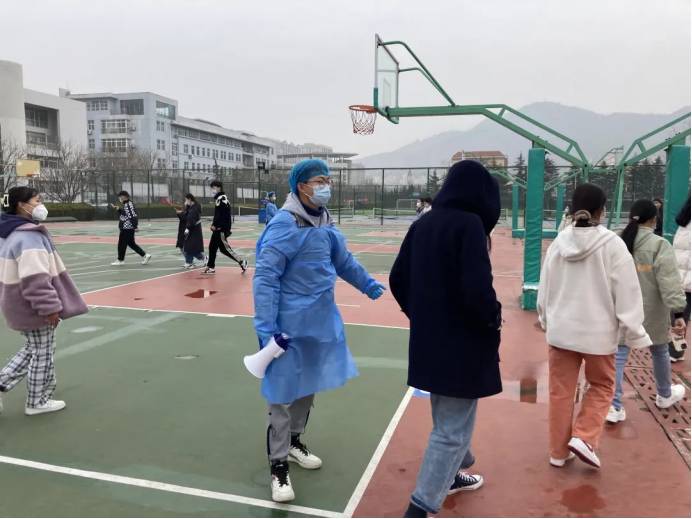 3月14日清晨,志愿者们早早来到检测现场,协助医护人员维护秩序,指引同学们有序进行核酸检测。一句“十人一组,前后间隔一米”不知说了多少次,辛劳忙碌的背后是坚定志愿服务的信念。志愿者们各司其职,为高效完成检测任务做出了积极的努力,彰显了青年的责任与担当,用实际行动为同学们筑起一道坚实的“红色屏障”。