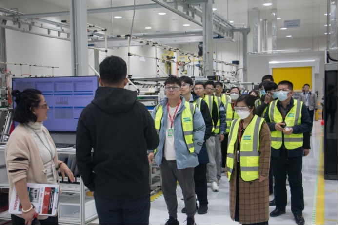 下午,师生一行人分为两组,分别进行智能制造和智能产品的车间参观,工艺经理和研发经理详细介绍了产品结构、生产流程、生产工艺等。参观结束后,采购副总裁和人事招聘经理结合个人发展,就学生实习、就业岗位、工作内容、工作时长、公司福利等方面进行讲解。