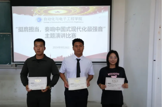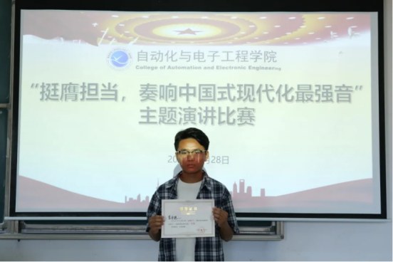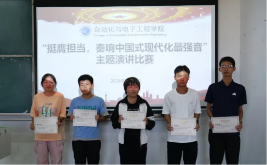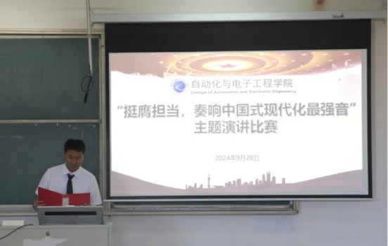于弘毅楼E204举办了“挺膺担当,奏响中国式现代化最强音”主题演讲比赛。此次活动通过演讲的形式,展现了新时代青年的责任感和使命感。